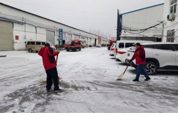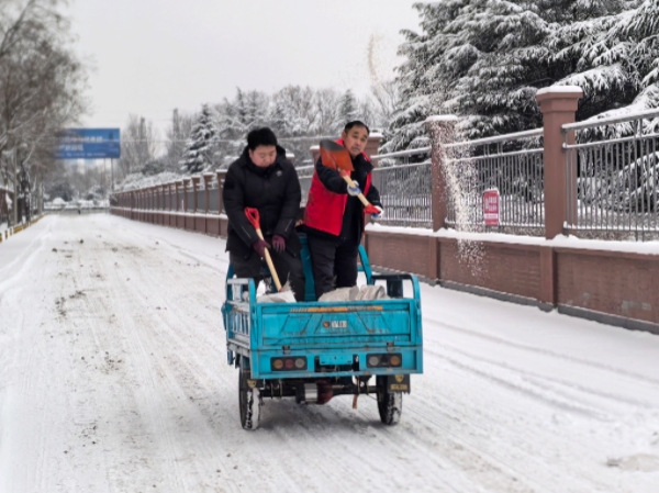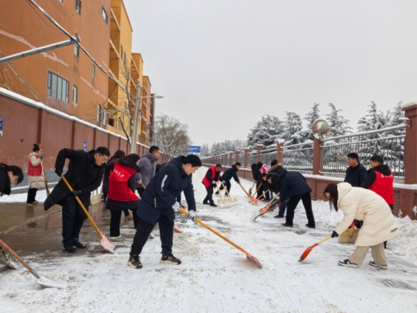 活动现场,志愿者们不畏严寒、冲锋在前,迅速投入到紧张的清冰除雪工作中。大家分工明确、配合默契:有的手握铁锹,将路面厚实的积雪奋力铲至路边;有的挥动扫帚,仔细清扫残留的碎雪与冰渣;还有的负责调配、喷洒融雪剂,全力防范路面结冰。尽管寒风凛冽、雪水浸湿鞋袜,志愿者们的热情却丝毫不减,忙碌的身影在皑皑白雪中勾勒出一道温暖亮丽的风景线。经过数小时的连续奋战,办公区域及周边道路的积雪被彻底清除,原本湿滑难行的路面恢复了畅通,为过往车辆和行人营造了安全、便捷的出行环境。